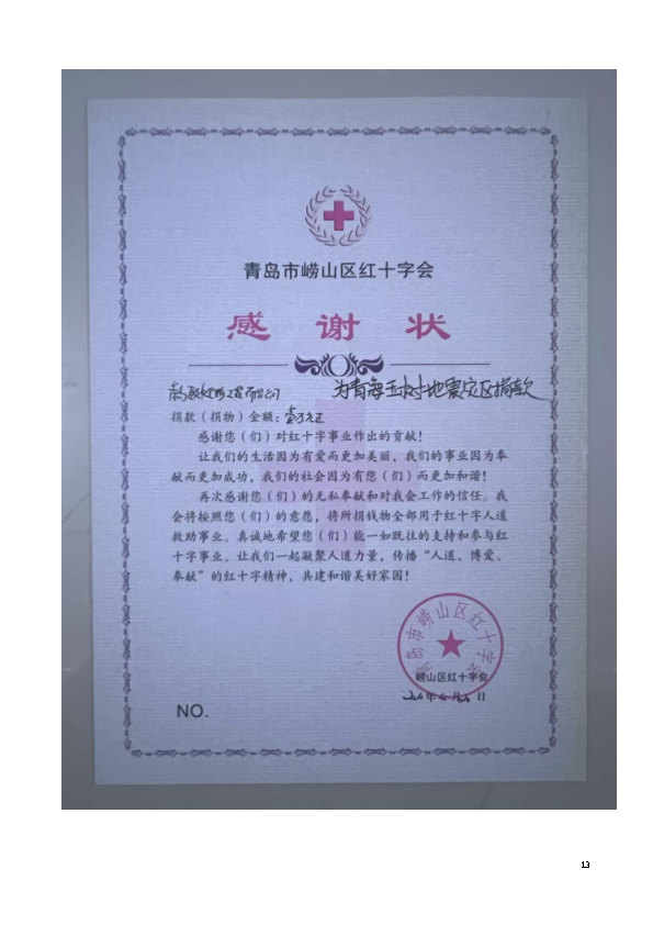 企業(yè)發(fā)展了不忘回報(bào)社會(huì),在汶川大地震、玉樹(shù)大地震、支援西北建設(shè)工作、抗擊疫情、資助貧困學(xué)生、關(guān)愛(ài)患者家庭,無(wú)償捐款捐物數(shù)百萬(wàn)元,做出了突出貢獻(xiàn),并發(fā)起成立了“博愛(ài)基金會(huì)”,時(shí)刻對(duì)社會(huì)弱勢(shì)群體獻(xiàn)出愛(ài)心。