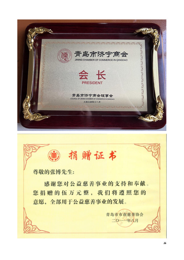 張博,漢族,中共黨員,濟(jì)寧嘉祥人,研究生學(xué)歷,青島市拔尖人才,青島大學(xué)特聘教授,山東科技大學(xué)特聘教授,青島市濟(jì)寧商會(huì)會(huì)長(zhǎng)、青島濟(jì)寧嘉祥商會(huì)會(huì)長(zhǎng)、青島市教授協(xié)會(huì)書(shū)記,歷任黨代表、人大代表,青島市十大民營(yíng)經(jīng)濟(jì)人物,中國(guó)專(zhuān)利山東優(yōu)秀發(fā)明家獎(jiǎng)獲得者、中國(guó)民營(yíng)科技企業(yè)家突出貢獻(xiàn)獎(jiǎng)獲得者,現(xiàn)任青島中惠健康集團(tuán)董事長(zhǎng)、青島中惠圣熙生物工程有限公司董事長(zhǎng)、青島中惠圣熙國(guó)際大酒店董事長(zhǎng)、青島華熙醫(yī)院董事長(zhǎng)。